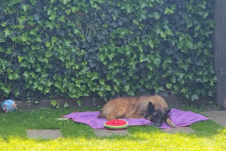 6 jr en 5 mnd. Middagdutje doen lekker buiten in de schaduw.