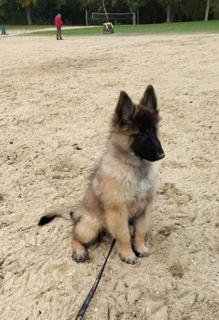 9,5 wk. Mee naar het bos dat was leuk.