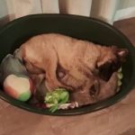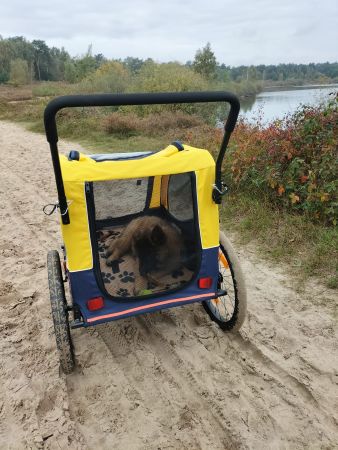 Rusten in de fietskar met een kluifje.